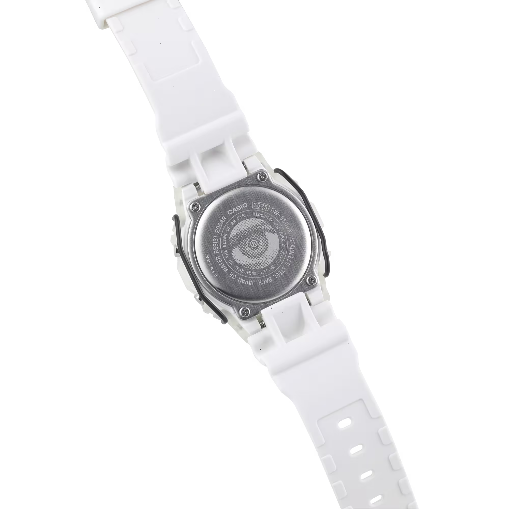 Tapping the DW5600 silhouette in combination with HIDDEN NY’s unmistakable colors, white and green, the DW5600HDN257 is an iconic, yet ever-relevant design that enthusiasts of both brands recognize. Further highlighting the synergies between the brands, HIDDEN NY’s theme of ‘Past, Present, and Future’ is apparent in the use of the ‘IN THE BLINK OF AN EYE’ motif and is the perfect representation of the fleeting nature of time.