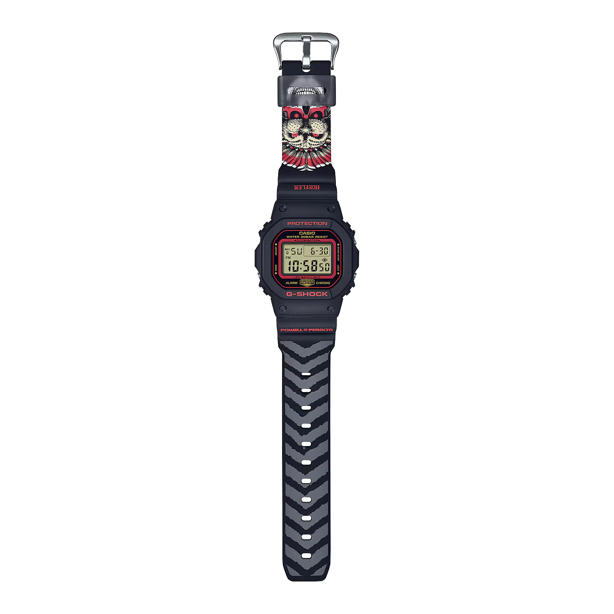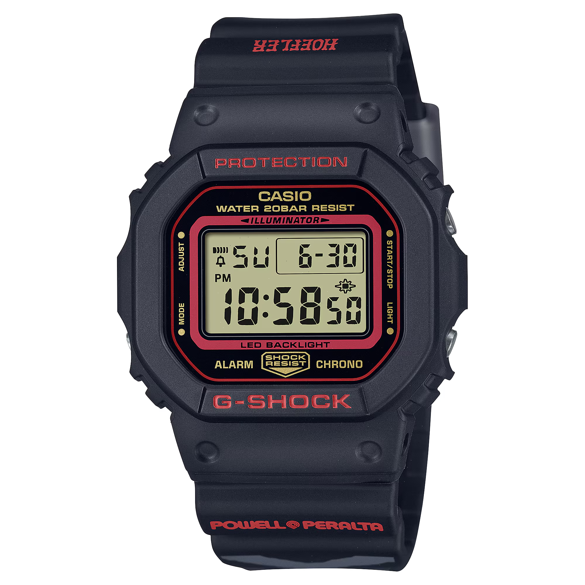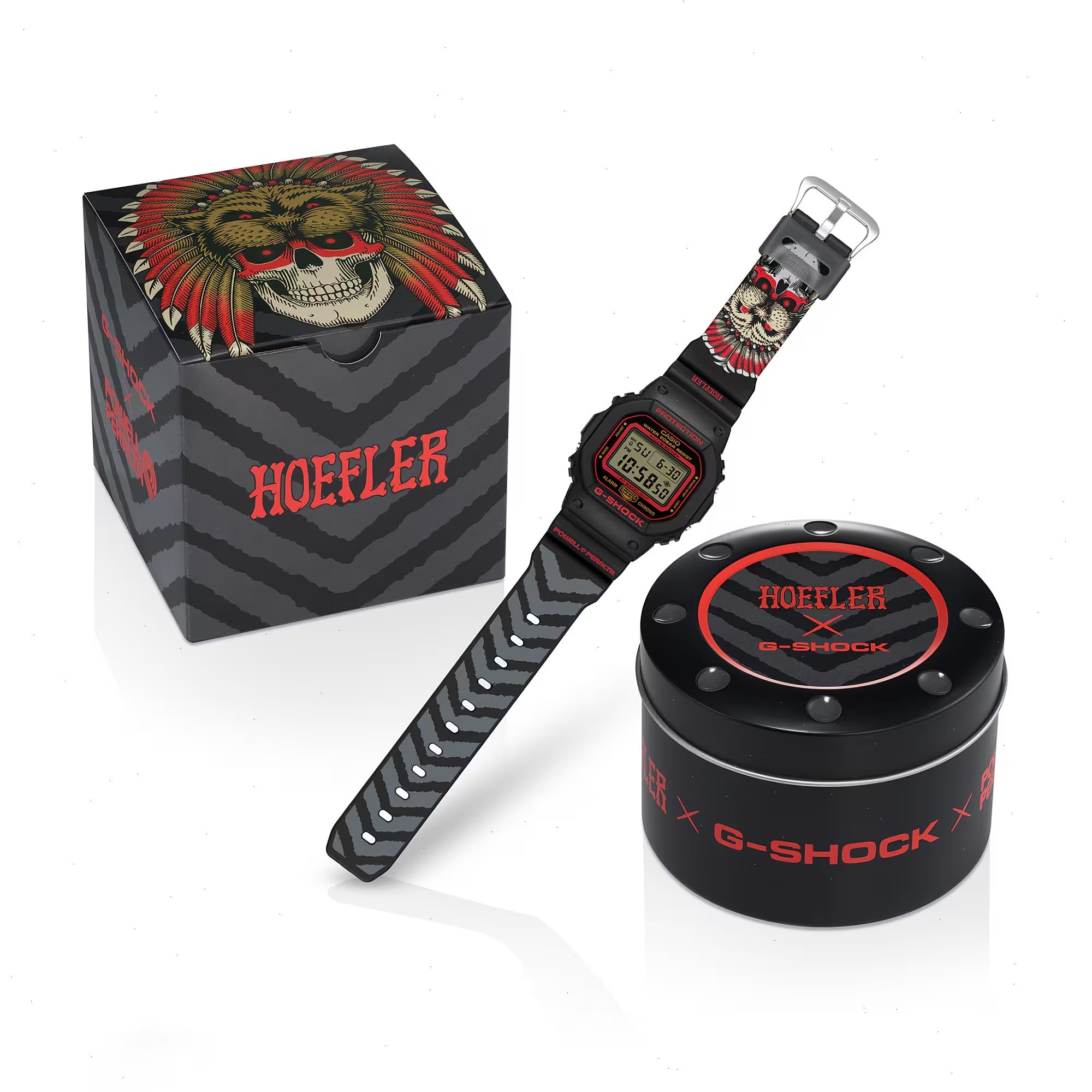The classic DW5600 takes to the street, featuring a signature Hoefler graphic on the band and the Olympian skateboarder’s own signature on the case back. Press the button to activate the LED backlight and see the Powell Peralta logo appear on the display.