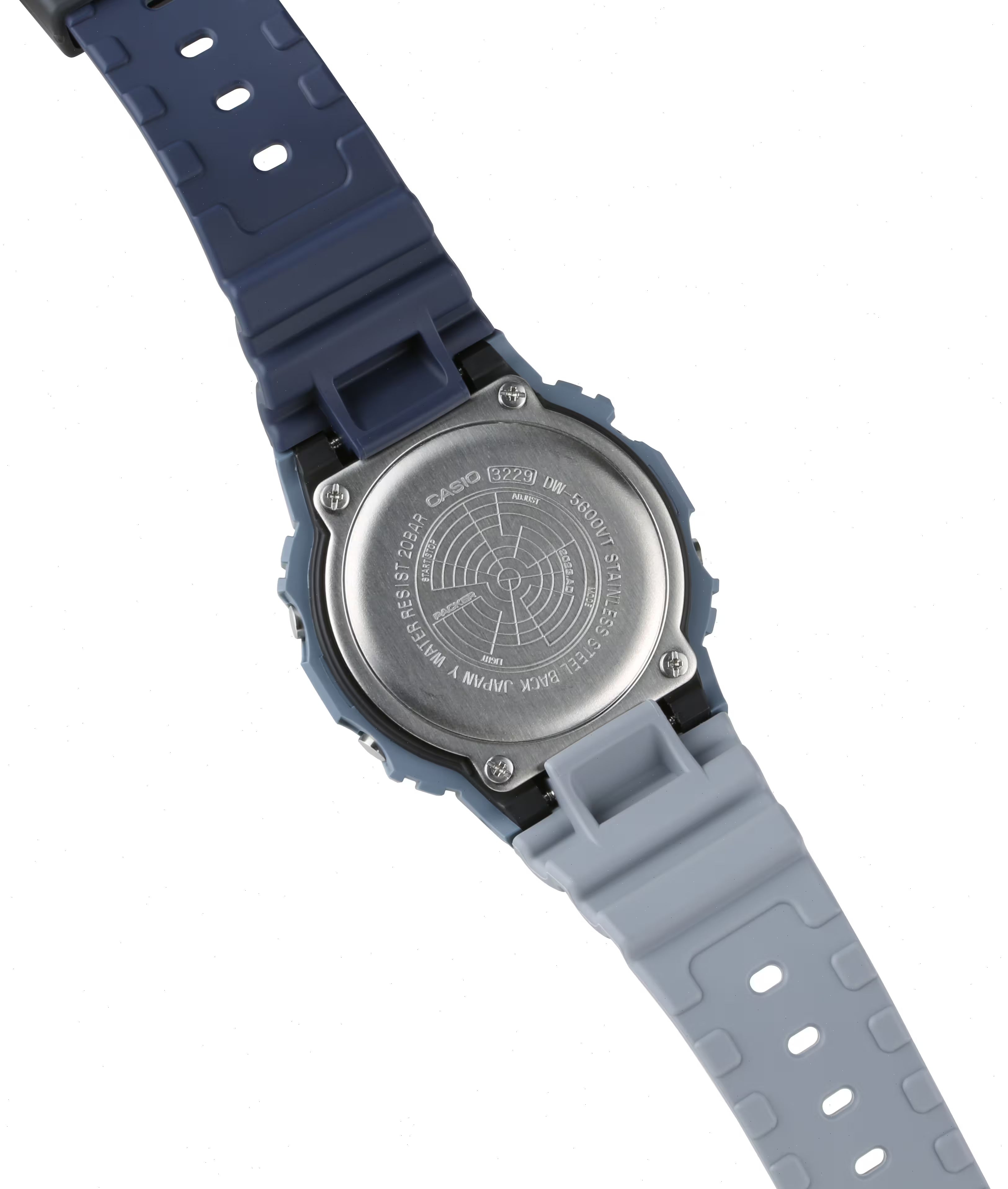 The DW5600PCK232 combines G-SHOCK’s enduring spirit of durability and toughness with Packer’s innovative designs and streetwear style, creating a unified timepiece. This limited-edition model features a cerulean blue resin case, accompanied by two interchangeable resin bands in slate grey and deep navy. The color palette reflects the futuristic and environmental elements that inspire the construction of this one-of-a-kind timepiece.