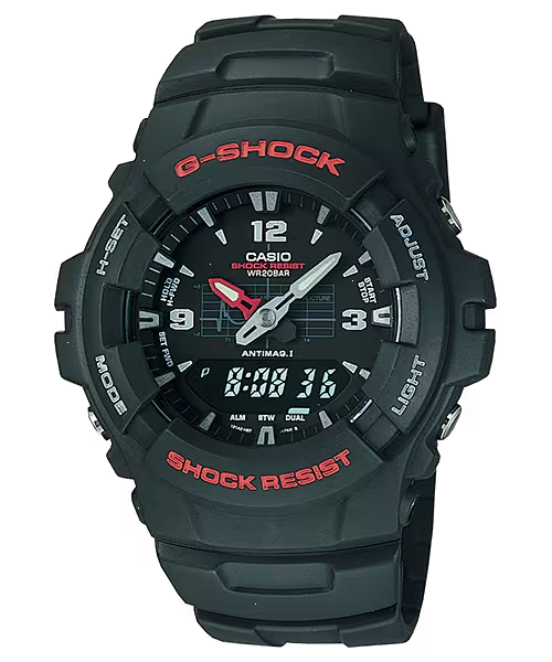 Ever heard of the K.I.S.S theory? Sometimes simple is better. This G-Shock has all the hallmarks of a classic. With Shock resistance, 200 meter water resistant, Anti-Magnetic resistance and more it's a perfectly balanced timepiece. Black resin band analog and digital watch with black face.