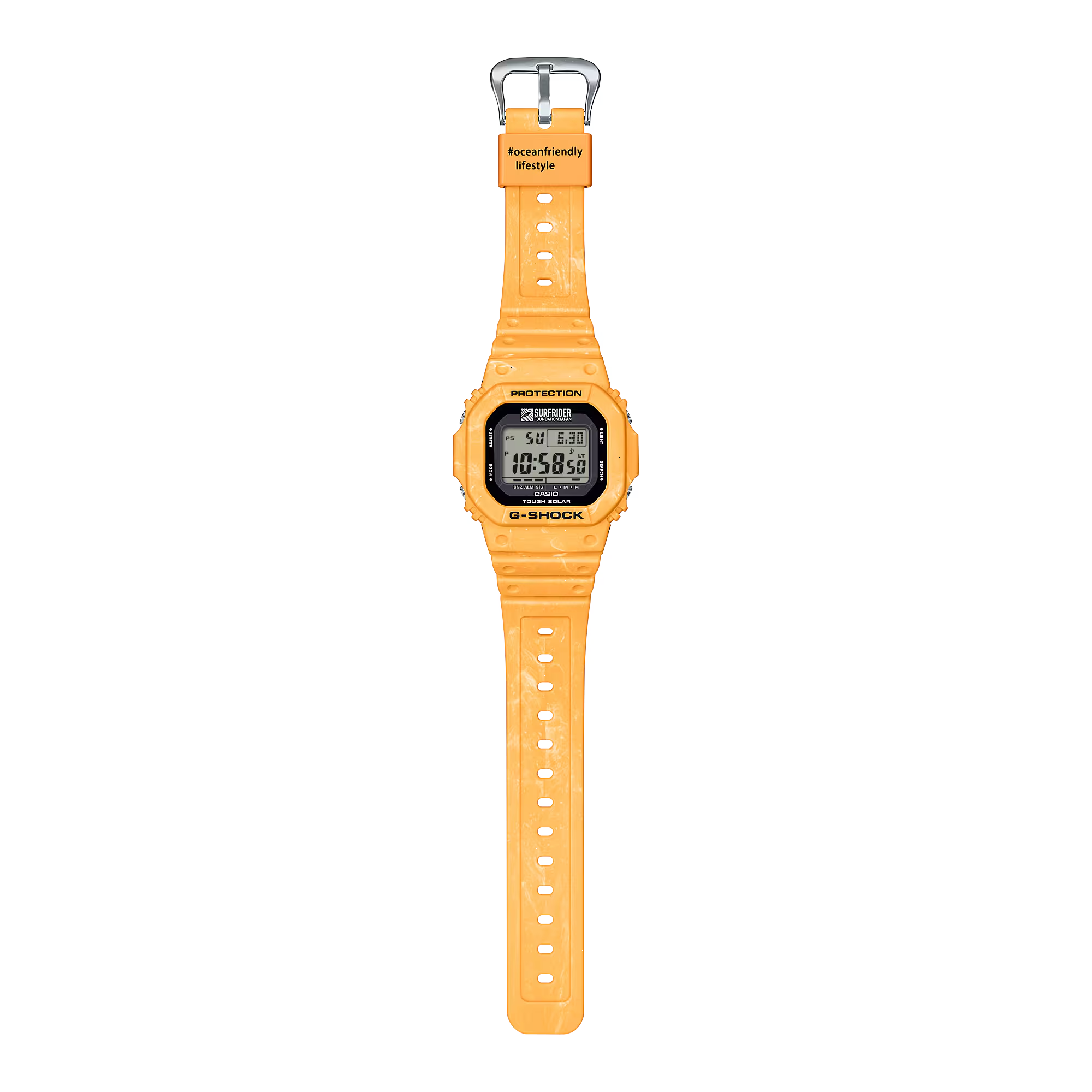 Made with bio-based resin and equipped with Tough Solar technology, the watch embodies our shared commitment to sustainability and harmony with nature. The Surfrider Foundation Japan logo is featured on the face and case back, and the band loop is printed with a befitting hashtag: #oceanfriendlylifestyle.