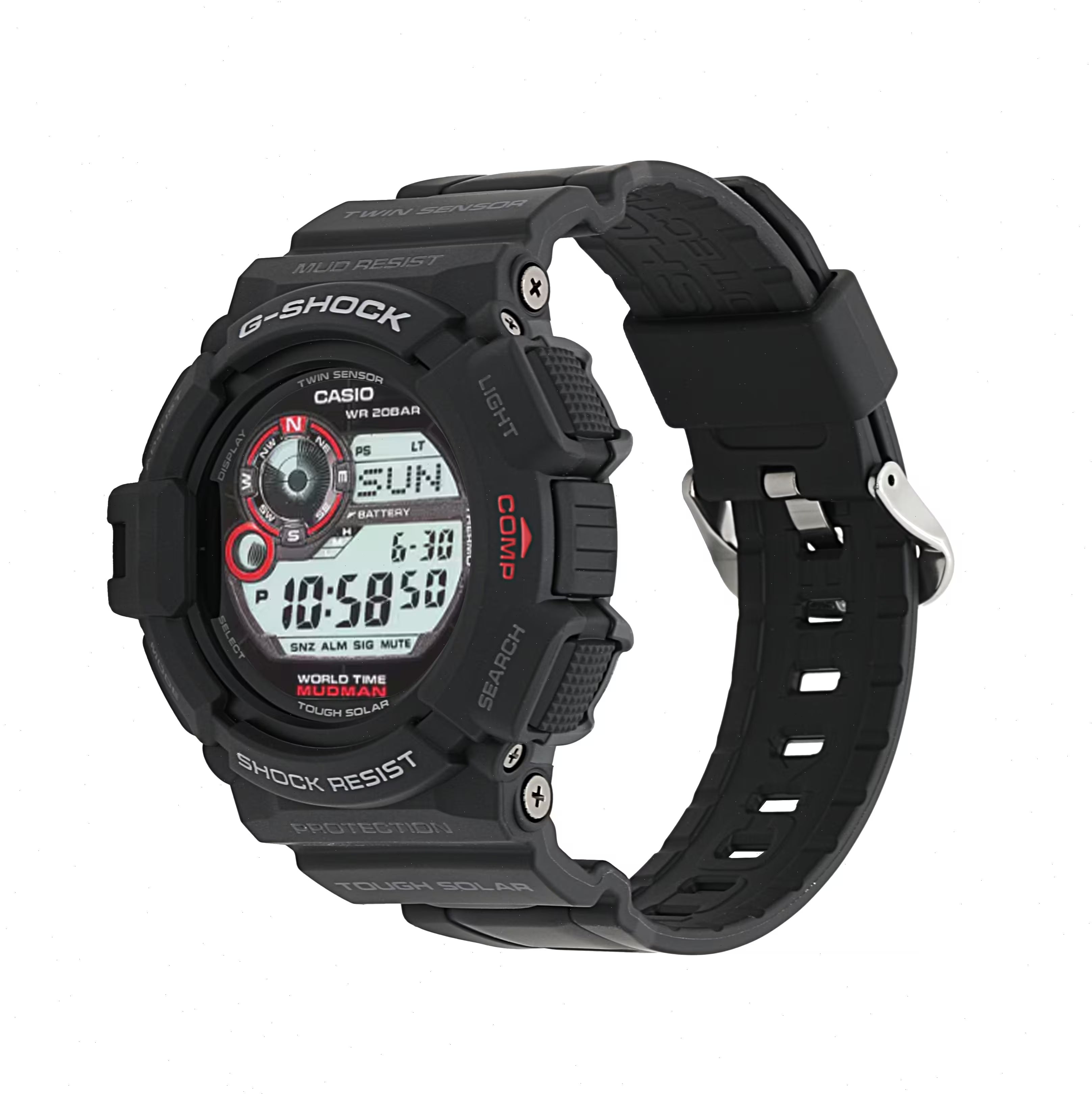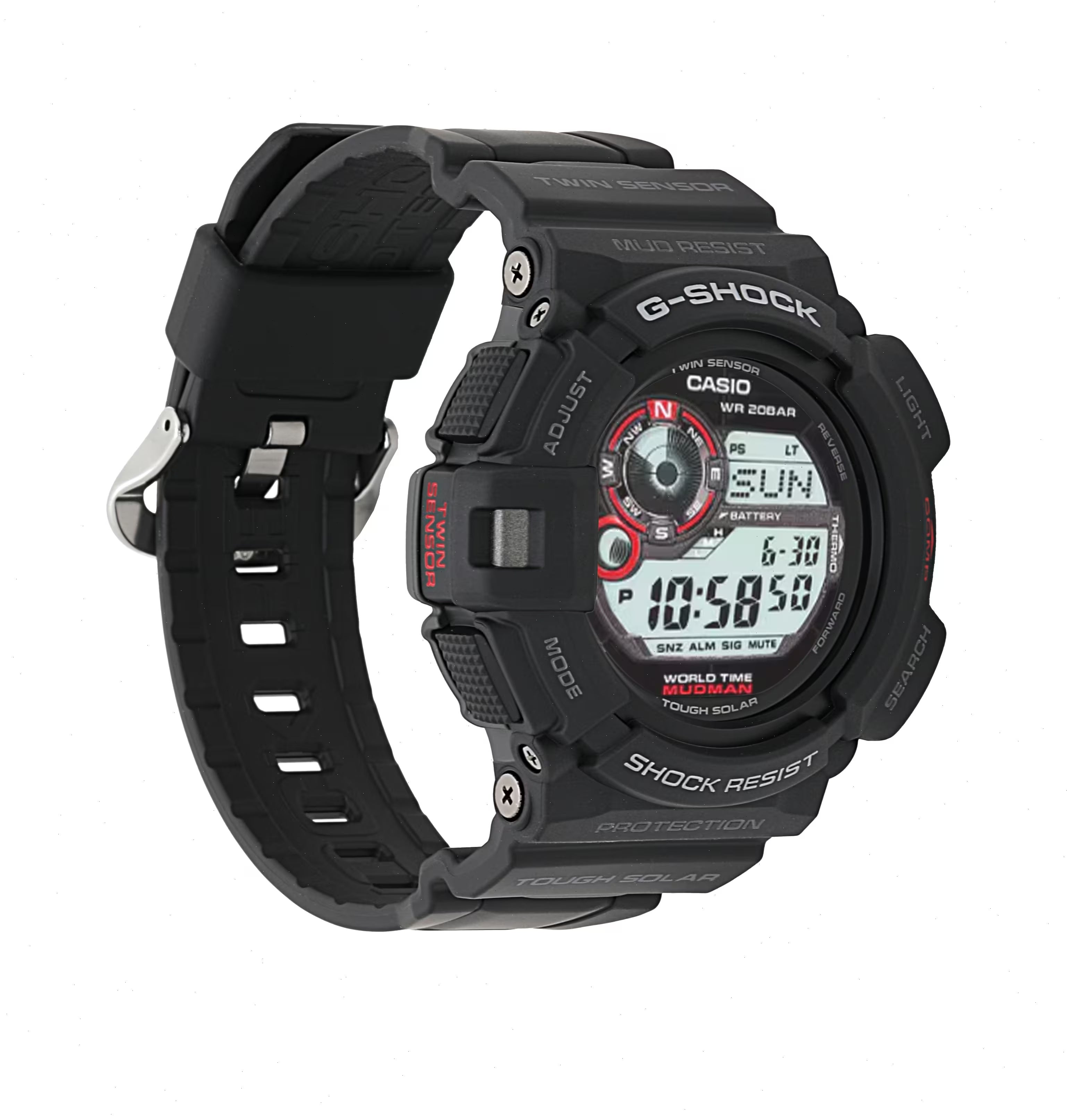 This new MUDMAN model is the first one to be equipped with a direction sensor and thermo sensor that help you keep your bearings whenever you adventure into parts unknown. The touch of a button goes directly into the Compass Mode from any other mode. A Moon Phase graph gives you an idea of whether the nighttime hours will be dark or light. A declination function even makes it possible to adjust the watch's magnetic north direction reading so it indicates true north.