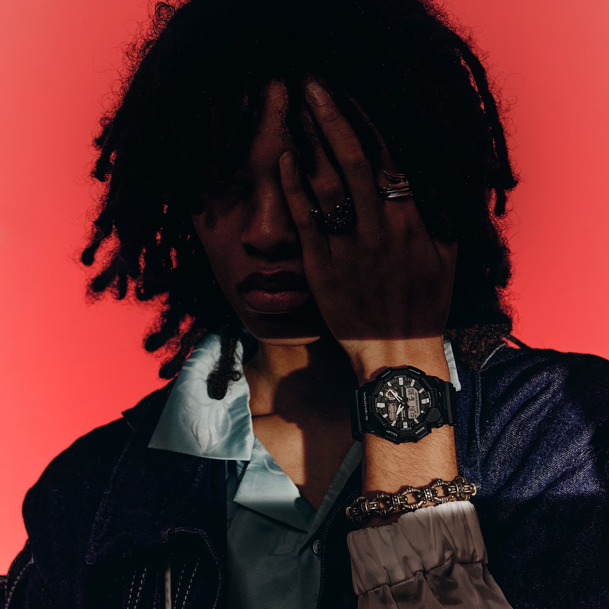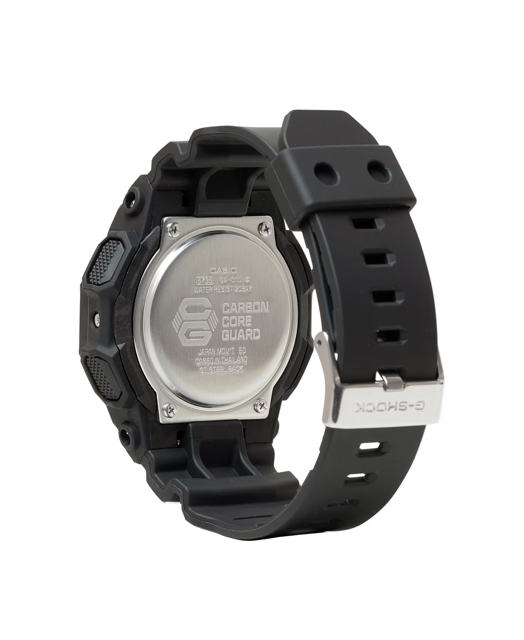 The analog-digital GA010 delivers handy features like world time and stopwatch, as well as a high-brightness LED light, which can be easily accessed from the large button on front of the case, ensuring visibility even in the dark.