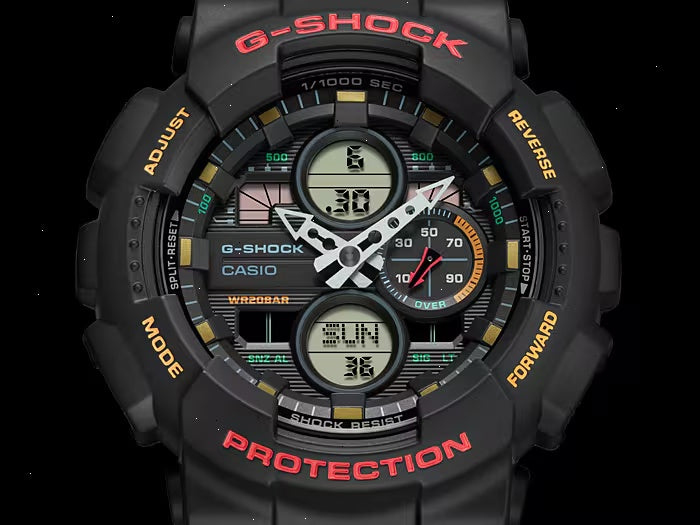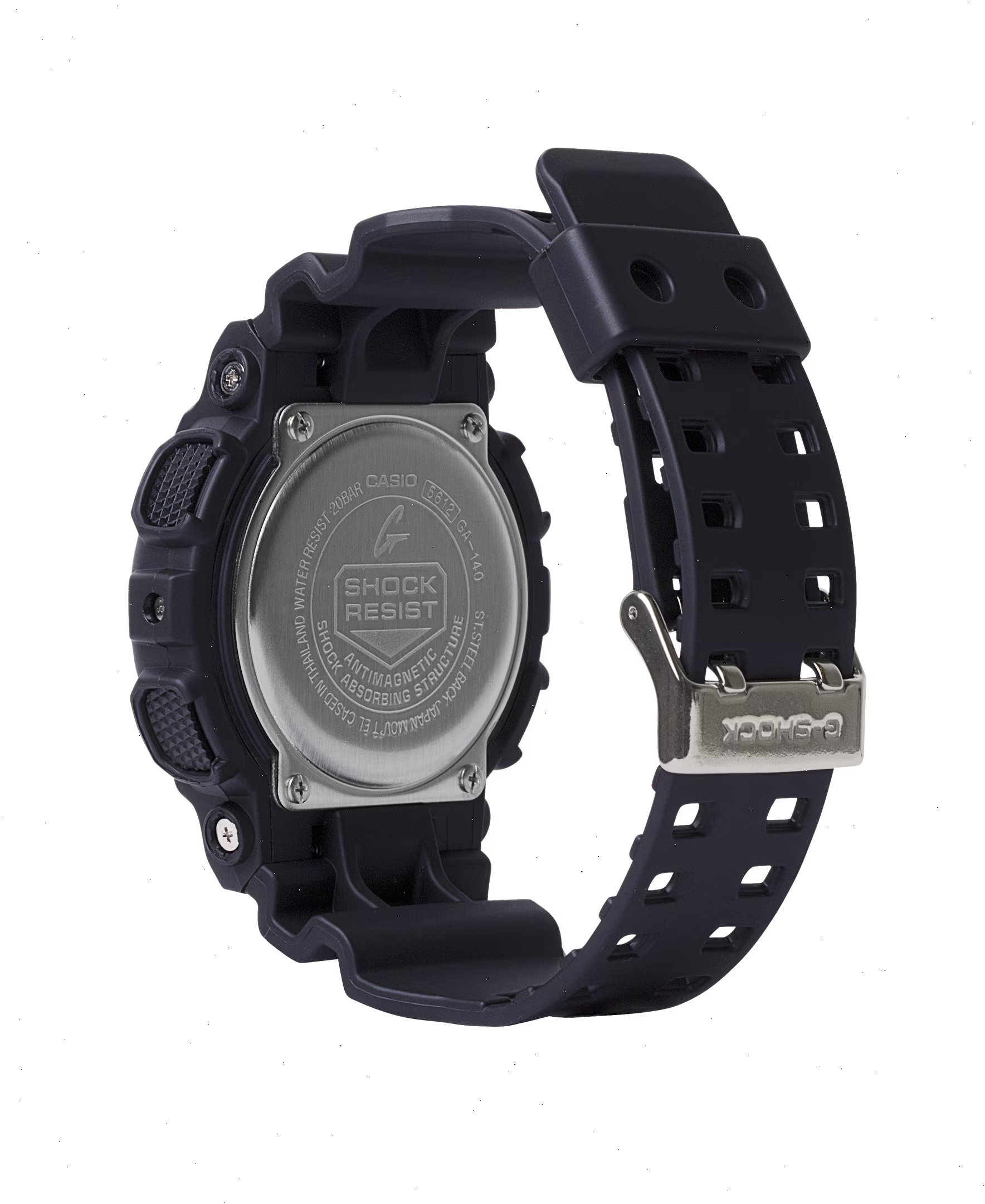 Inherits the big case used in the first-generation GA-100 models. A model developed with a design based on a 90s stereo or a portable music player motif, while retaining a tough structure. A G-SHOCK that goes perfectly with summer street fashion.