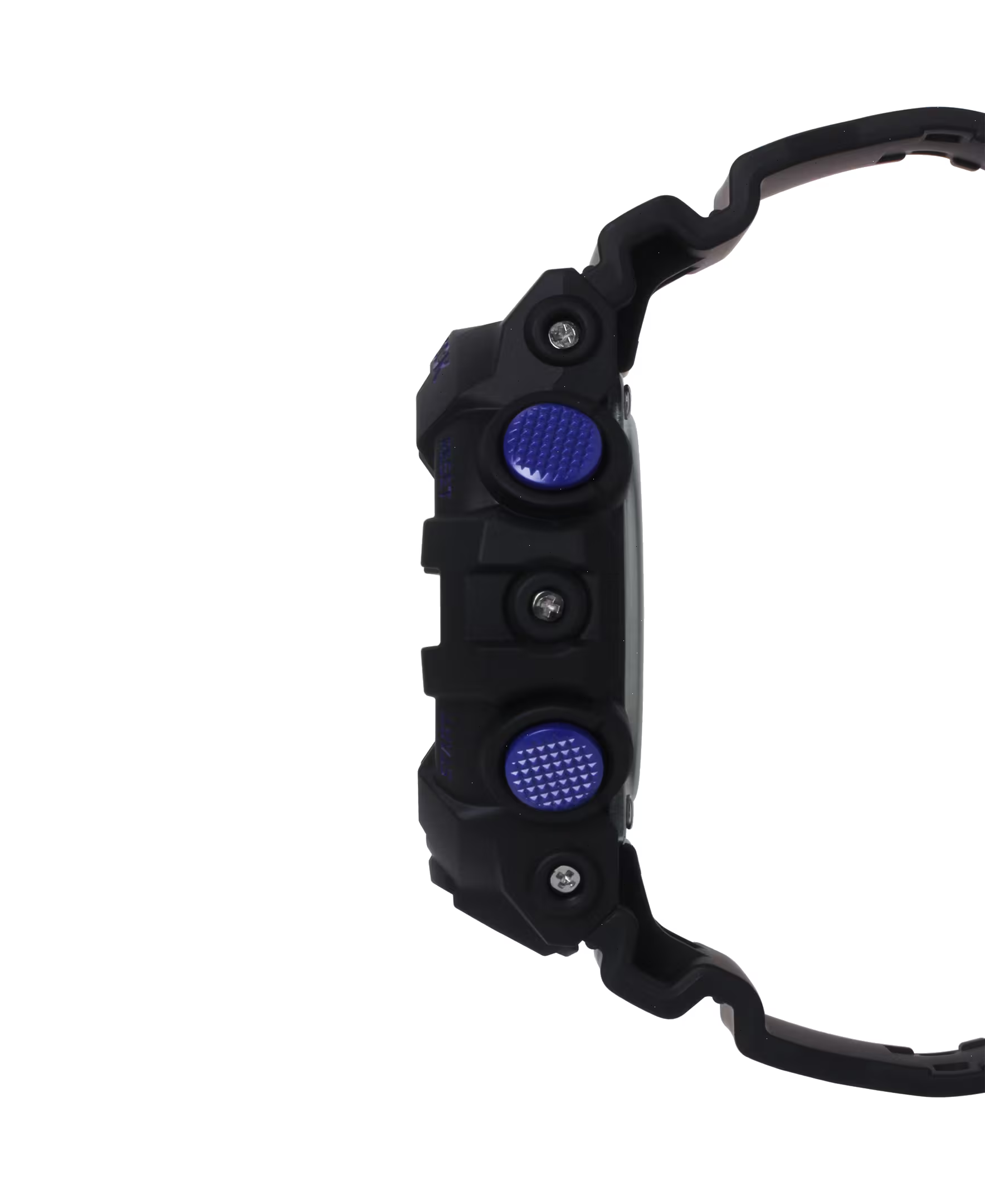 The analog-digital GA700VB-1A takes a dive into the world of virtual reality. The basic black coloring of the watch is accented by blue violet, which creates a futuristic atmosphere of virtual reality for the rugged, big case GA700.