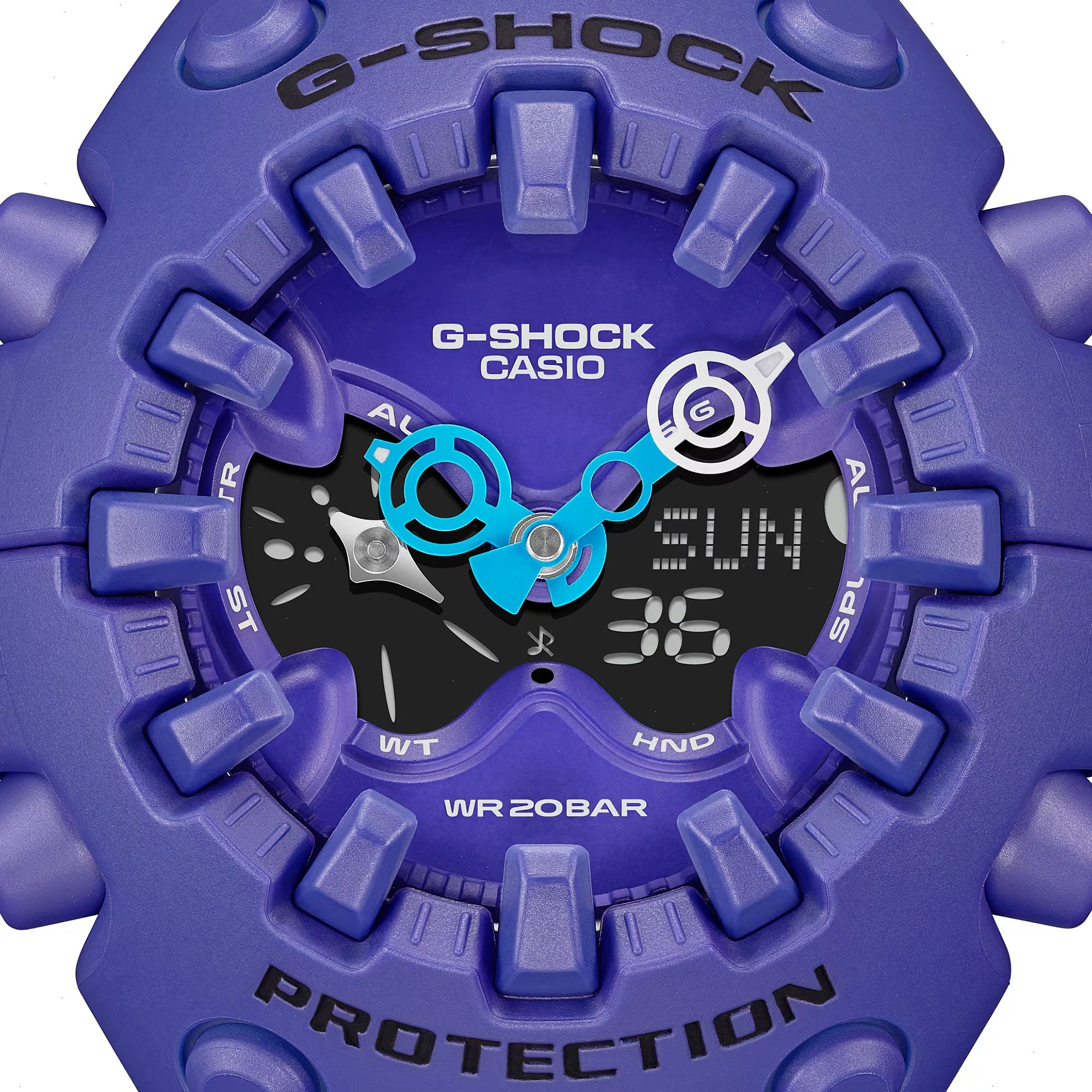 Although technically a blue G-SHOCK watch, the unique color of the GAV01-2A may come into question. In some lighting the watch is a deep blue, while in others one may see hues of purple. The vibrant, deep color of the GAV01-2A adds to its energy and life. A cool watch often exceeds expectations, and the richness of the color palette in the shock-resistant resin puts this watch down in the annals of exciting timepieces. So, is it a blue watch? We’ll let you decide.