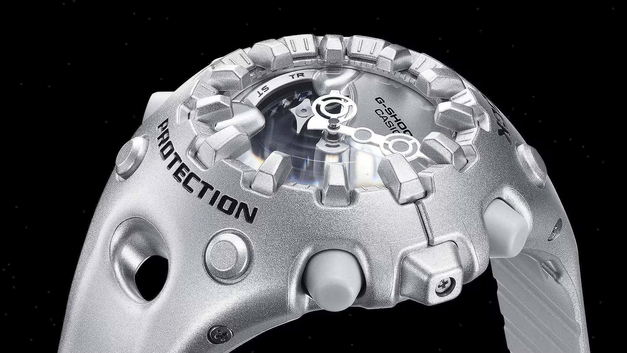 It's the unique dial that often draws attention. The butterfly-shaped, openwork dial reveals a full-size LCD. Nicknamed the G-SHOCK “cool eyes,” and enthusiastically called “alien eyes” by many fans, the wild dial meshes form and function into an expressive timepiece. The watch face is given depth with large, circular hands that create a strong contrast with the dial and make for an easy read. Large hands are often a detriment to shock resistance, as they tend to jar or break in the event of an impact. To overcome this, Casio utilizes magnetic hand technology that keeps the hands independent of the shaft. In the event of a bump or shake, the large minute hand can absorb the shock by swinging freely, and it will momentarily return to its precise position. Innovative tech, bold design and a unique “cool eyes” dial make the GAV01-2A a cool watch to behold.