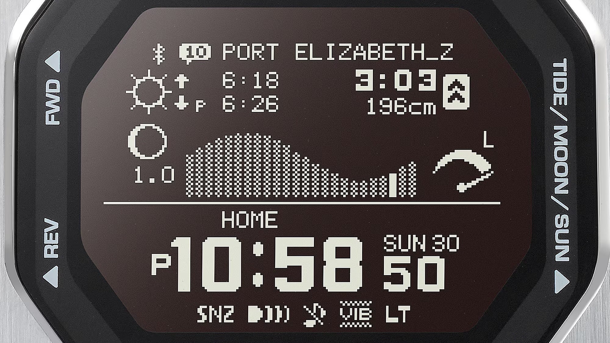 | App connectivity feature | Auto time adjustment,Easy watch setting,Approximately 300 world time cities,Notification function (incoming calls, incoming e-mails, new social media posts, calendar notifications, reminders),Activity history,Life log data,Distance correction by smartphone GPS,Tide graph setting (approximately 3,300 global points),Phone finder |