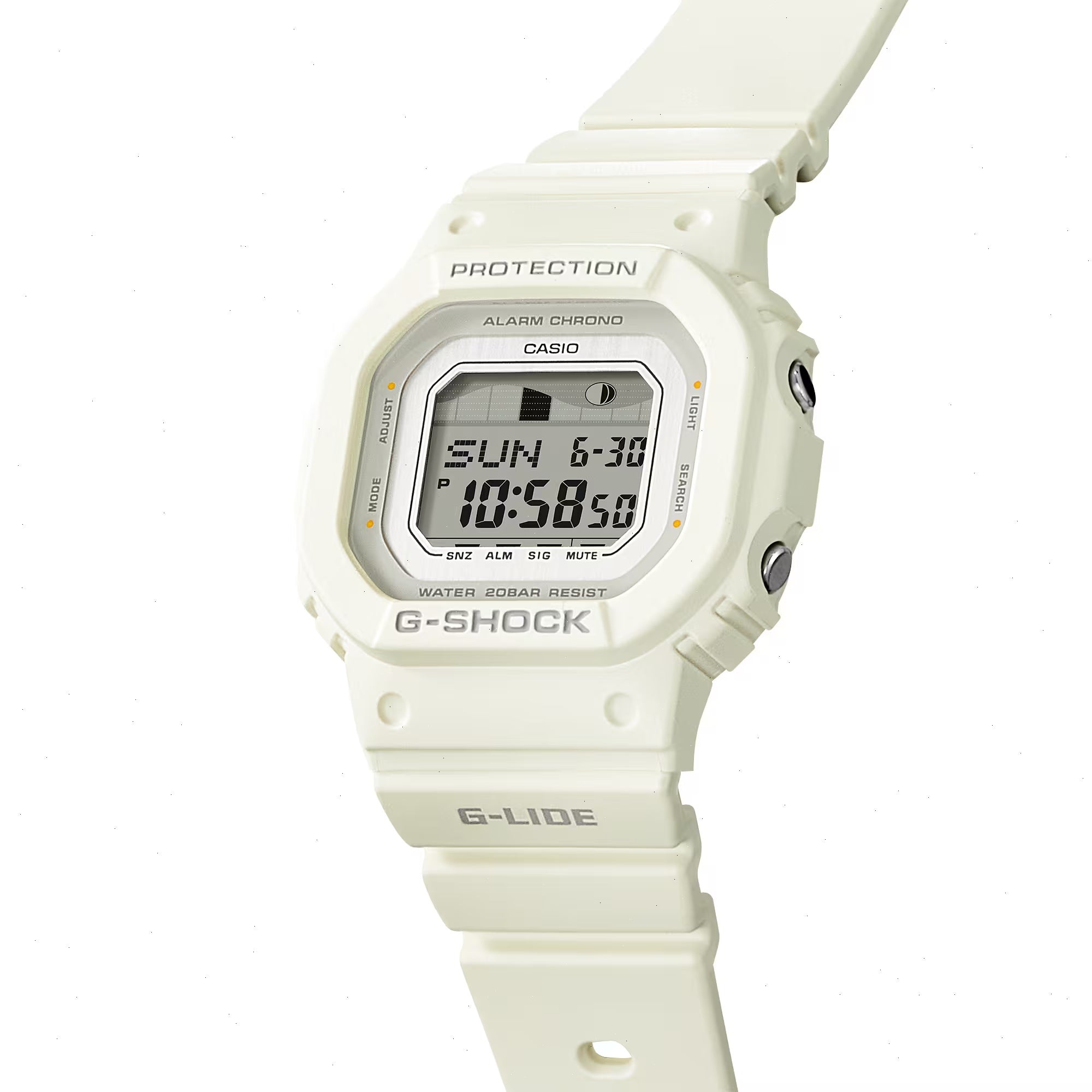 Shoot the Curl with a White G-SHOCK GLXS5600-7B Surf Watch