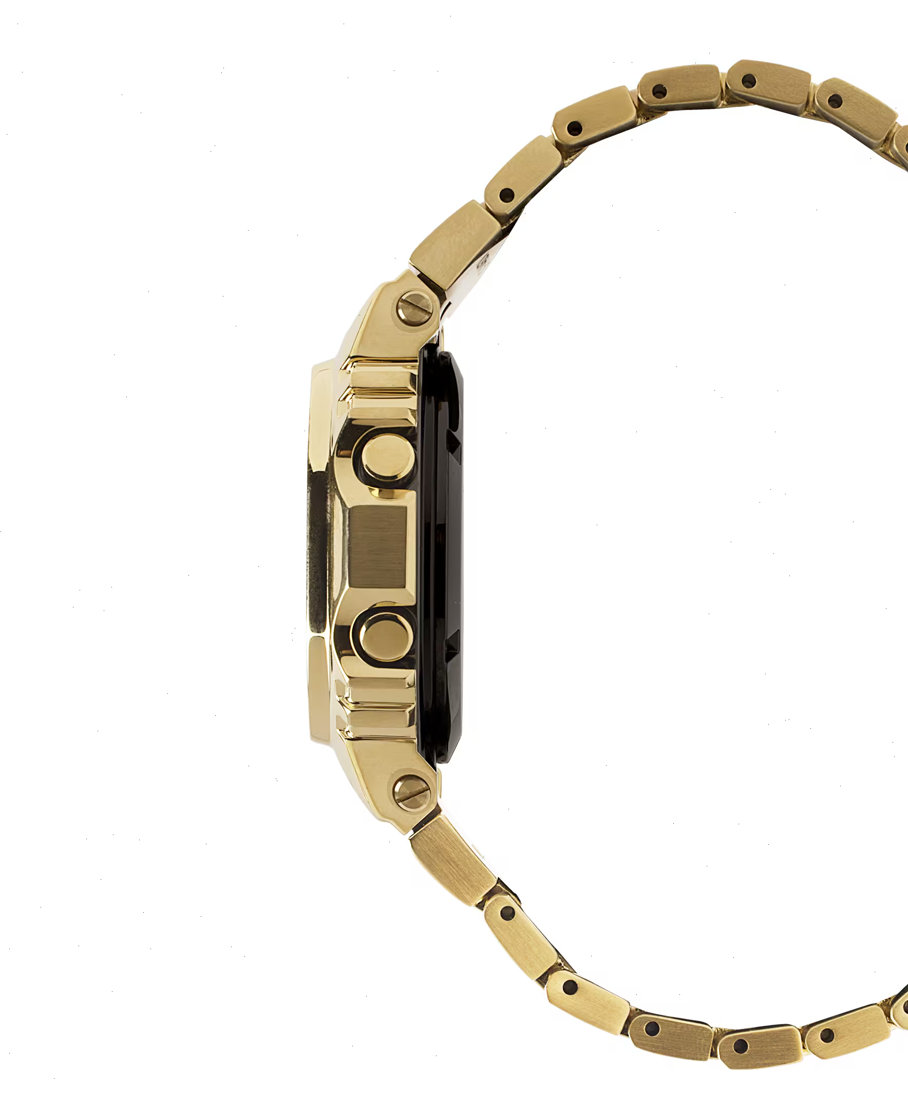 The GMW-B5000-1JF has been given a full-metal case by using a shock-resistant fine resin cushioning material inserted between the case and the sturdy stainless steel metal bezel. High-density mounting technology also allows the watch to maintain its size. The back of the watch features a solid Screw Lock Back and has been DLC treated for resistance to wear. Gold ion plating has been applied to the entire case and band for a beautiful color. Visibility too has been enhanced via use of a film solar cell and STN-LCD (liquid crystal).