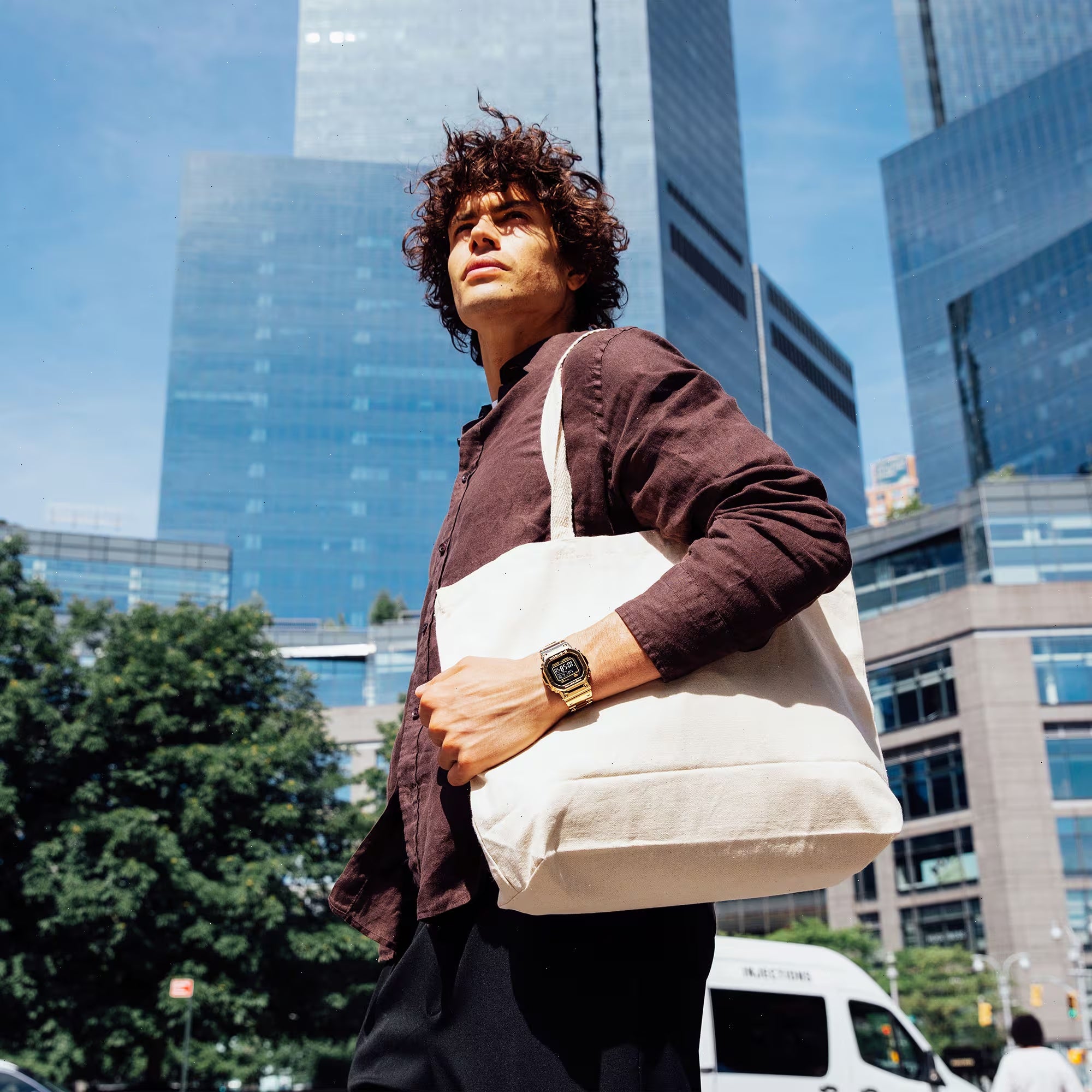 The DW-5000C is the original G-Shock model from 1983. The GMW-B5000 Series has inherited its characteristic square design and been given the full metal treatment along with upgraded features including smartphone linking.