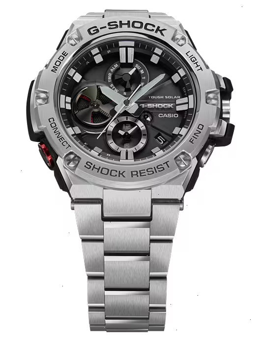 It is also equipped with Bluetooth® connectivity that enables accurate time acquisition via your smartphone. Its Tough Solar feature allows it to run stably, and it is also equipped with practical functions such as high-brightness LEDs and dual-dial world time.