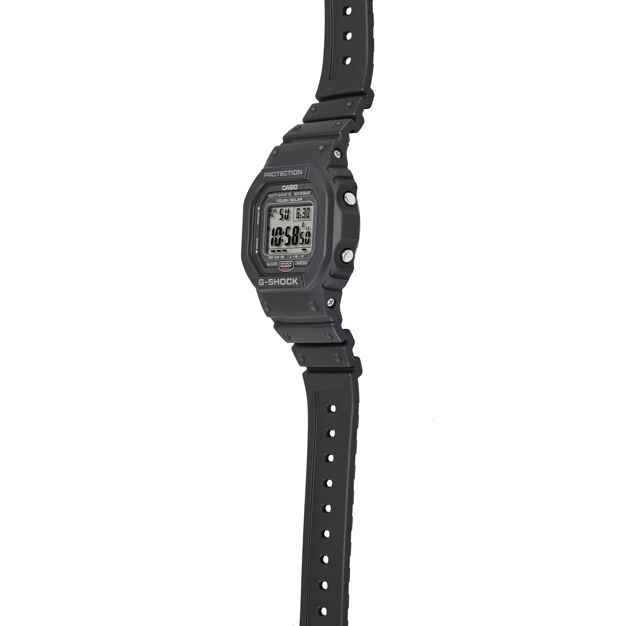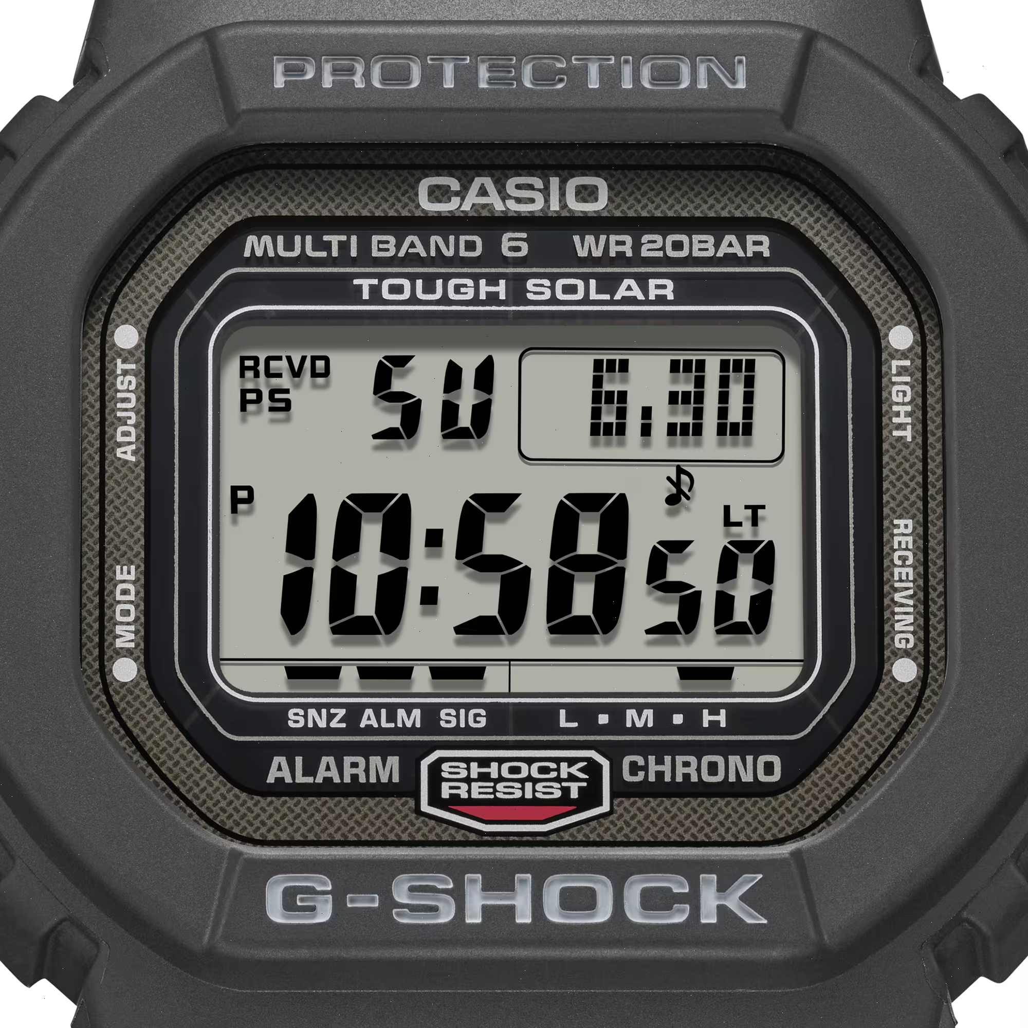 Pursuing further toughness while inheriting the DNA of the first G-SHOCK model (DW5000) the GW5000U-1 is constructed with a solid metal case and a screw back. This timepiece is also equipped with advanced technology, Multi-Band 6 that receives standard radio waves from 6 stations around the world. The metal case and screw back are made of DLC (diamond-like) to enhance wear resistance, and the screw back is also mirror-processed to create a luxurious finish. In addition, the resin band uses soft urethane that is comfortable to wear. Evolved from the G-SHOCK original design that was born in 1983, the GW5000U-1 is a discerning model that boasts technology and a high-quality finish.
