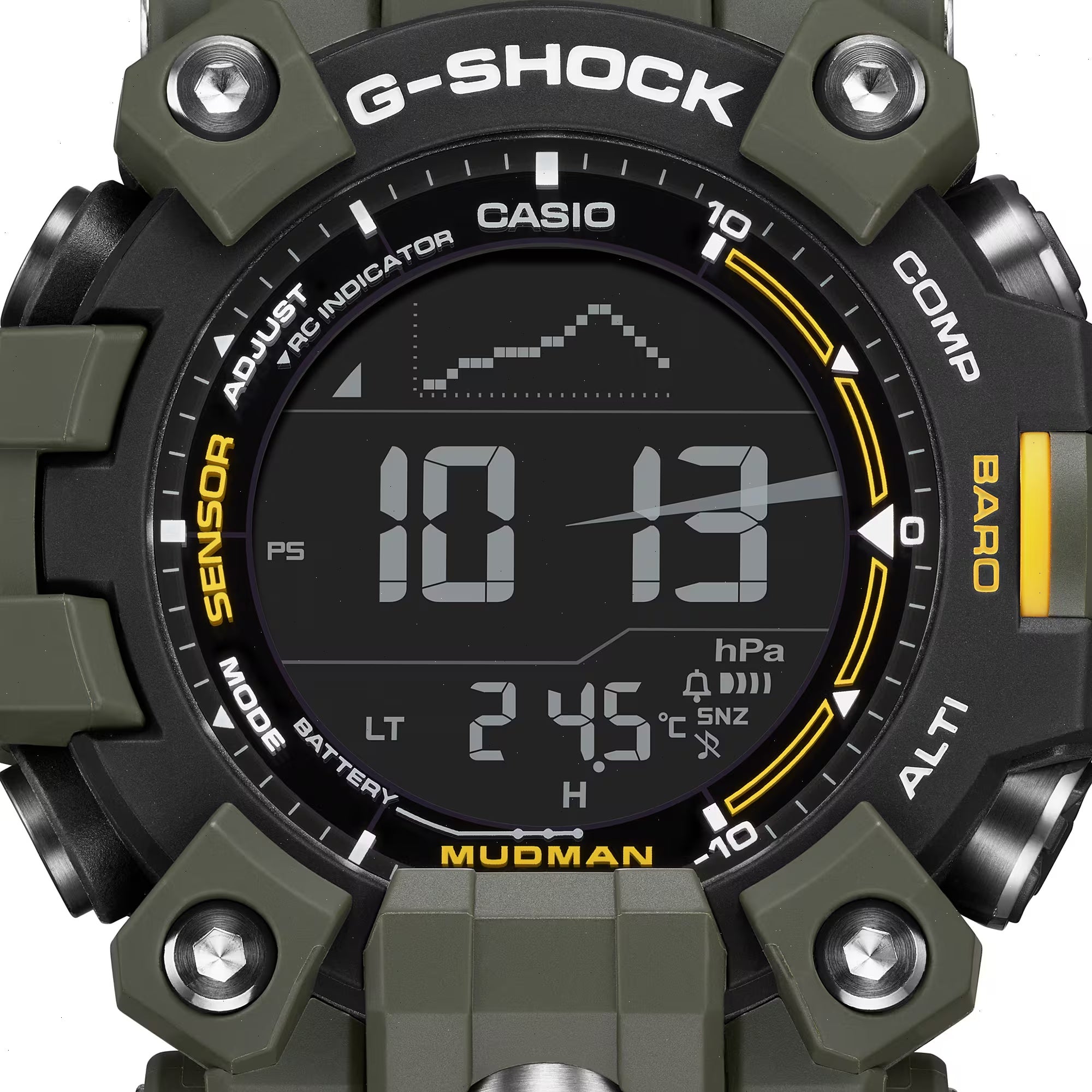 | Sensor feature | Digital compass Measures and displays direction as one of 16 points Measuring range: 0 to 359° Measuring unit: 1° 60 seconds continuous measurement Graphic direction pointer Bidirectional calibration Magnetic declination correction Bearing memory,Altimeter Measuring range: -700 to 10,000 m (-2,300 to 32,800 ft.) Measuring unit: 1 m (5 ft.) Manual memory measurements (up to 30 records, each including altitude, date, time) Auto log data (High/low altitudes, auto cumulative ascent and descent) Trek log data (up to 14 records of high/low altitudes, auto cumulative ascent and descent of particular treks) Others: Relative altitude readings (-3,000 to 3,000 m), Selectable measurement interval: 5 seconds or 2 minutes *1 second for first 3 minutes only *Changeover between meters (m) and feet (ft),Barometer Display range: 260 to 1,100 hPa (7.65 to 32.45 inHg) Display unit: 1 hPa (0.05 inHg) Atmospheric pressure tendency graph (Past 42 hours of readings) Atmospheric pressure differential graphic Barometric pressure tendency information alarm (beep and arrow indicate significant changes in pressure) *Changeover between hPa and inHg,Thermometer Display range: -10 to 60℃ (14 to 140℉) Display unit: 0.1℃ (0.2℉) *Changeover between Celsius (℃) and Fahrenheit (℉) |
