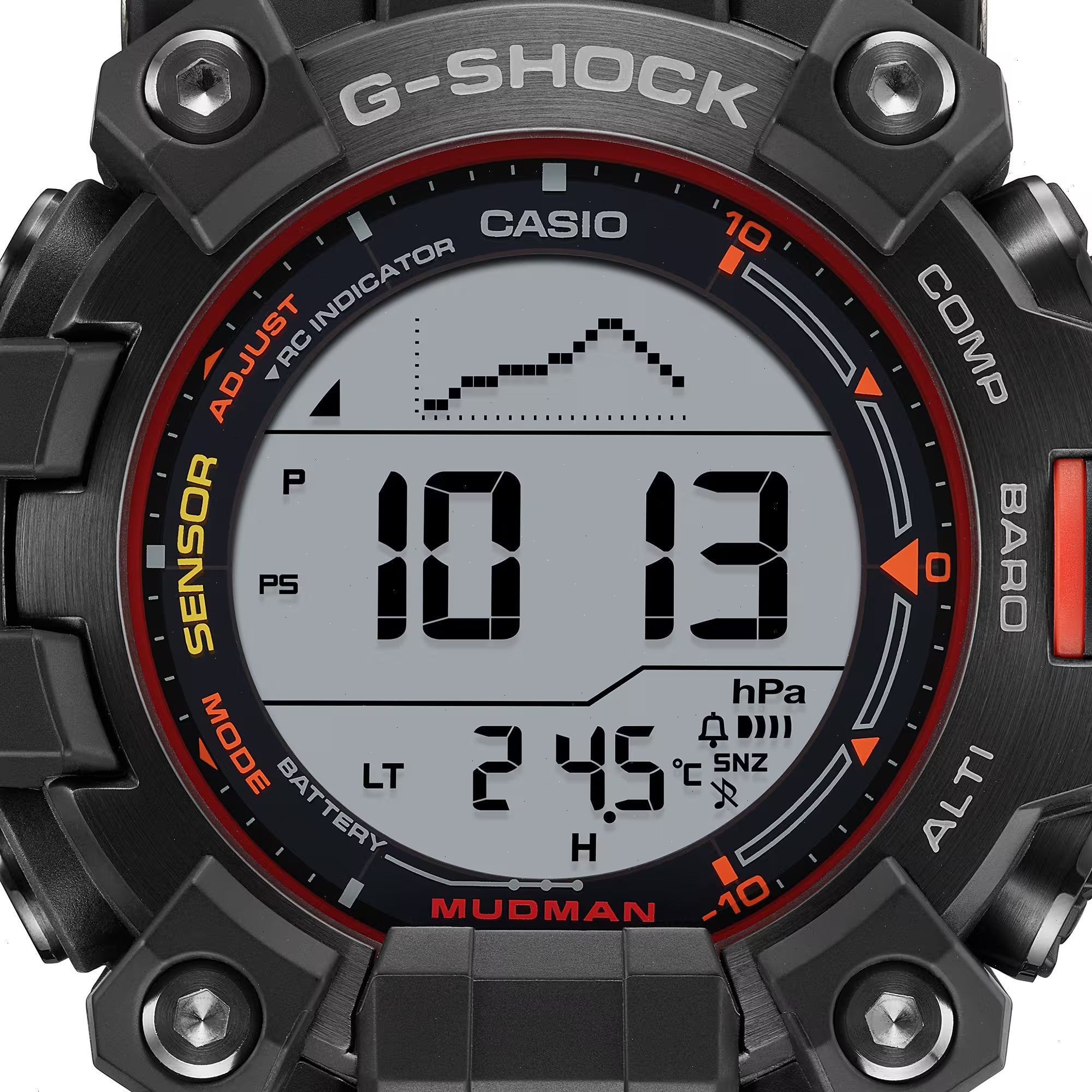Based on GRAVITYMASTER, MUDMASTER, and MUDMAN models that deliver peak performance in punishing conditions in the air and on land, this line features a black watch case symbolizing toughness, with accents in vivid emergency colors that capture the world of professionals involved in rescue efforts and other critical missions.