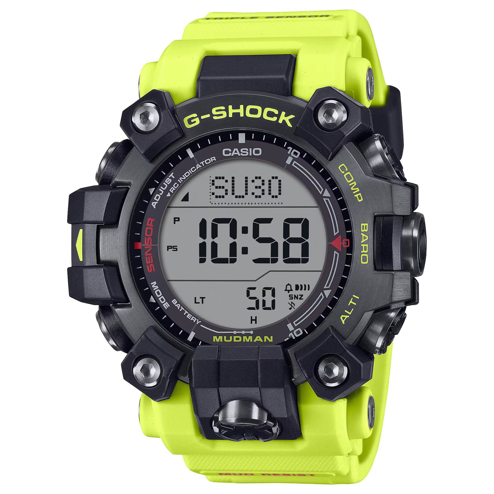 For total support in the harshest environments, this MUDMAN watch delivers peak performance in punishing conditions on land. It features bold black to exude toughness and a band in the same bright yellow used for emergency rescues and safety signs. This innovative design is a sure fit for the world of professionals involved in rescue efforts and other critical missions.