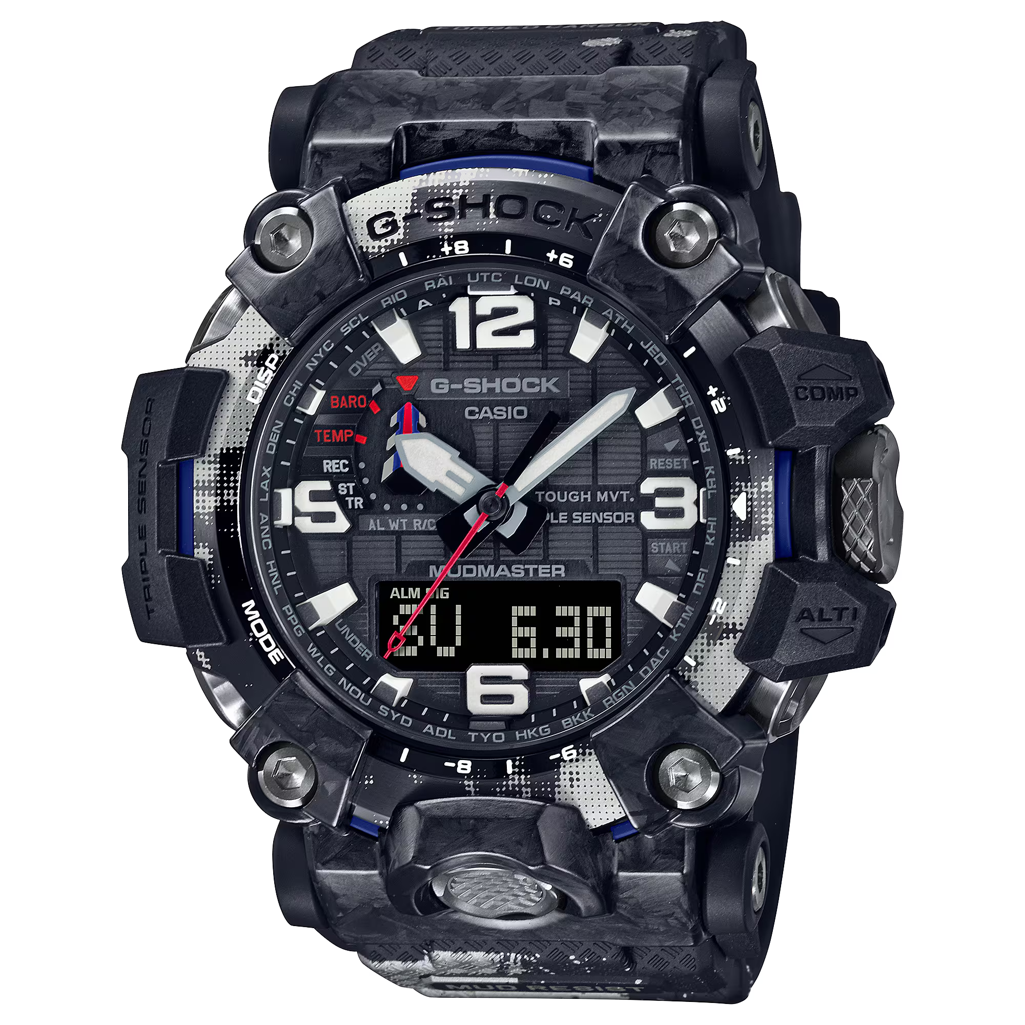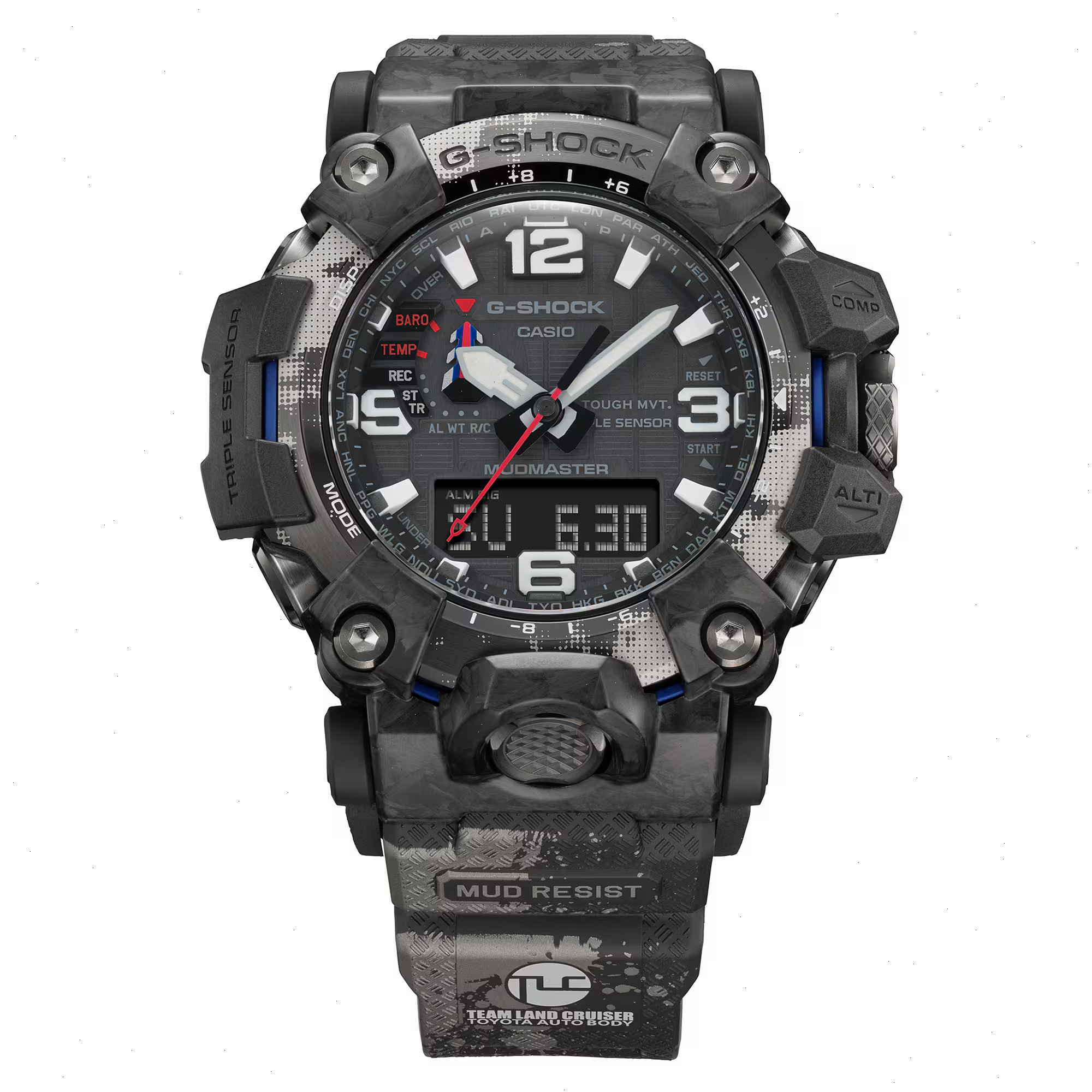 Built to withstand all the mud and dust your adventures can bring, the G-SHOCK MUDMASTER is the ideal canvas for a collaboration with a car this tough. Add in forged carbon bezel components and a carbon core guard structure for a smaller, lighter watch, and you’re ready to take on the harshest of terrain.